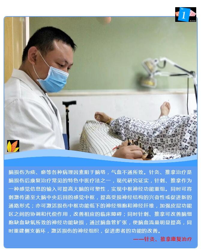 脑损伤的特点是高发病率、高致残率和高死亡率。中国每年脑外伤的发病率10%,其中约50%的患者因为残疾不能独立生活。 衡阳华程医院康复中心本着“康复一人 幸福一家“的初衷与使命,希望通过科学的康复治疗,让更多的患者重新回归社会、回归家庭。康复中心主任王灵芝告诉小编,目前我科已收治包括脑梗死、脑出血、脊髓损伤、腰椎骨折术后、肩关节术后、小儿脑瘫、臂丛神经损伤、格林巴利综合征等康复病人,他们通过康复训练均有不同程度的好转。